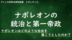 はじめにグシャケン前回はこのような内容でした。グシャケン今回はナポレオンが第一帝政を成立させる過程をみていきます。ナポレオンは革命後のフランスで、どのような社会を築こうとしたんでしょうか?それでは一緒にみていきましょう!MQ:ナポレオンはど...