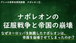 はじめにグシャケン前回はこのような内容でした。グシャケン今回はナポレオンの征服戦争とナポレオン帝国が崩壊していく過程をみていきます。なぜナポレオンは帝国を崩壊させてしまったんでしょうか?それでは一緒にみていきましょう!MQ:なぜヨーロッパを...