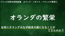 11-4.オランダ、イギリス、フランスの繁栄 [11-4.1]オランダの繁栄 はじめにグシャケン前回はこのような内容でした。グシャケン今回はオランダの繁栄についてです。近世になぜオランダは経済大国になることができたんでしょうか?それでは一緒にみていきましょう!MQ:近世にオランダはなぜ経済大国になることができたのか?... 2025.12.17 11-4.オランダ、イギリス、フランスの繁栄
