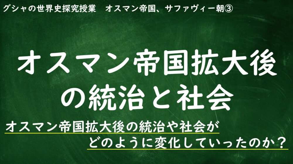 今回は、オスマン帝国が拡大して後の統治と社会についてです。オスマン帝国拡大後に統治や社会はどのように変化していったんでしょうか?