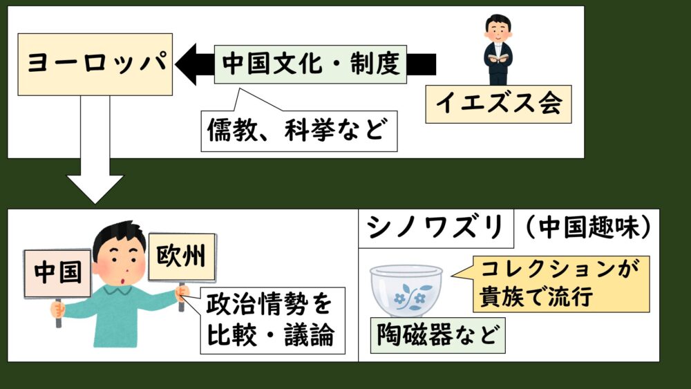 儒教や科挙などの中国文化や制度がヨーロッパに渡って、中国の政治制度についてヨーロッパと比較して、優れた点や劣っている点を議論する研究がおこなわれました。