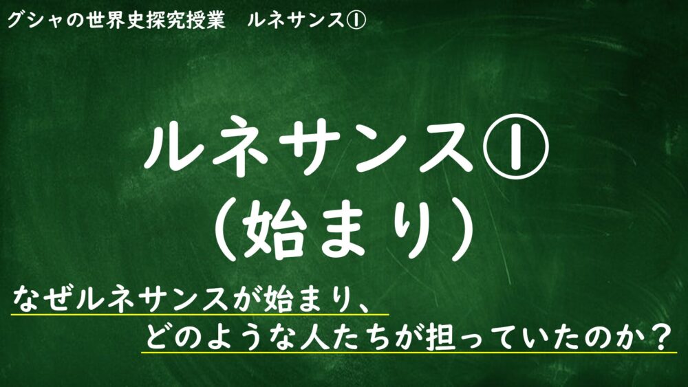 今回からは、近世ヨーロッパのルネサンスについてです。なぜルネサンスは始まって、どんな人たちが担っていたんでしょうか?