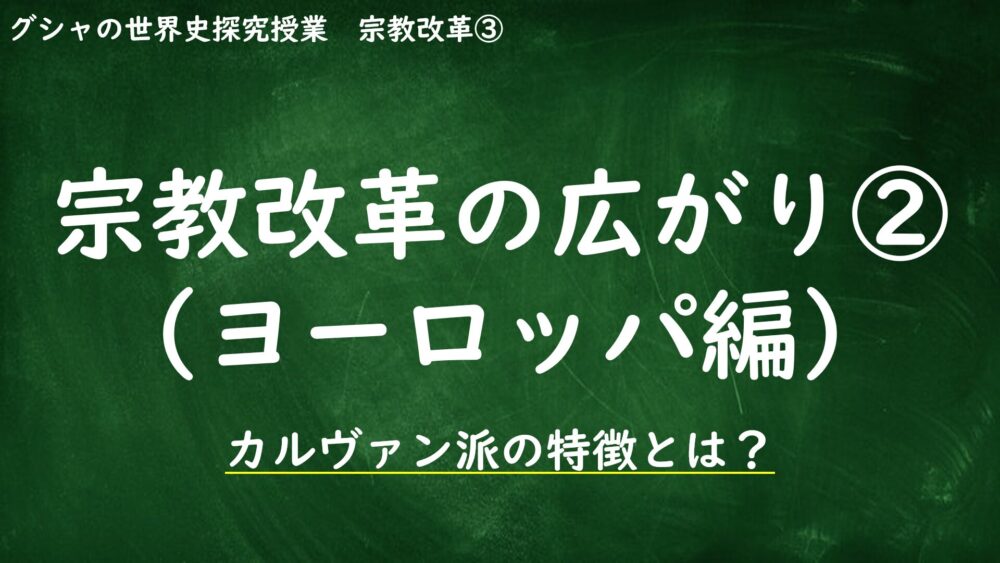 今回は宗教改革がドイツだけでなく、ヨーロッパにも広がっていく様子をみていきます。新しい宗派であるカルヴァン派にはどんな特徴があったんでしょうか?