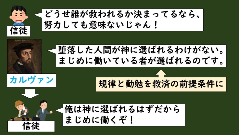 しかし、カルヴァンの人々は逆にこう考えたんです。
