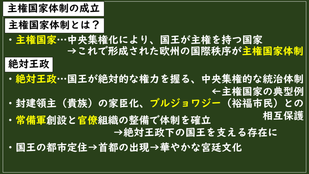 今回は主権国家体制の成立についてです。主権国家体制はどんな経緯で誕生したんでしょうか?