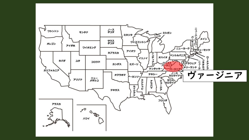 現在のアメリカ合衆国の首都ワシントンD.Cの南にある州ですね。