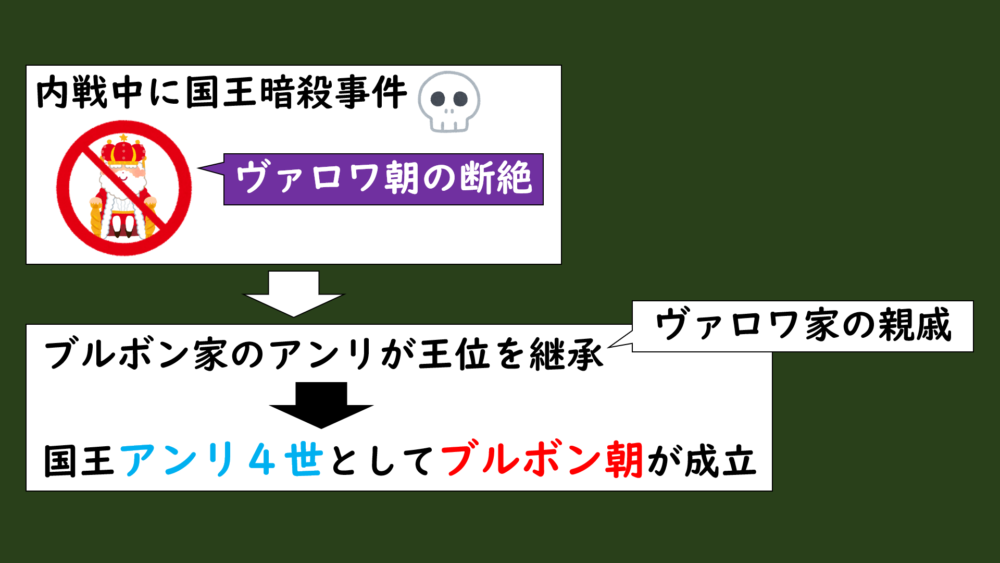 こうしてヴァロワ朝にかわって新たにブルボン朝と呼ばれる王朝が始まることになりました。