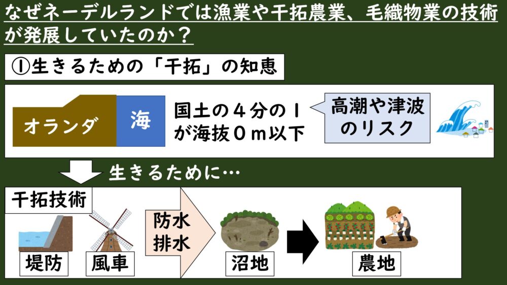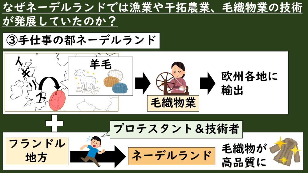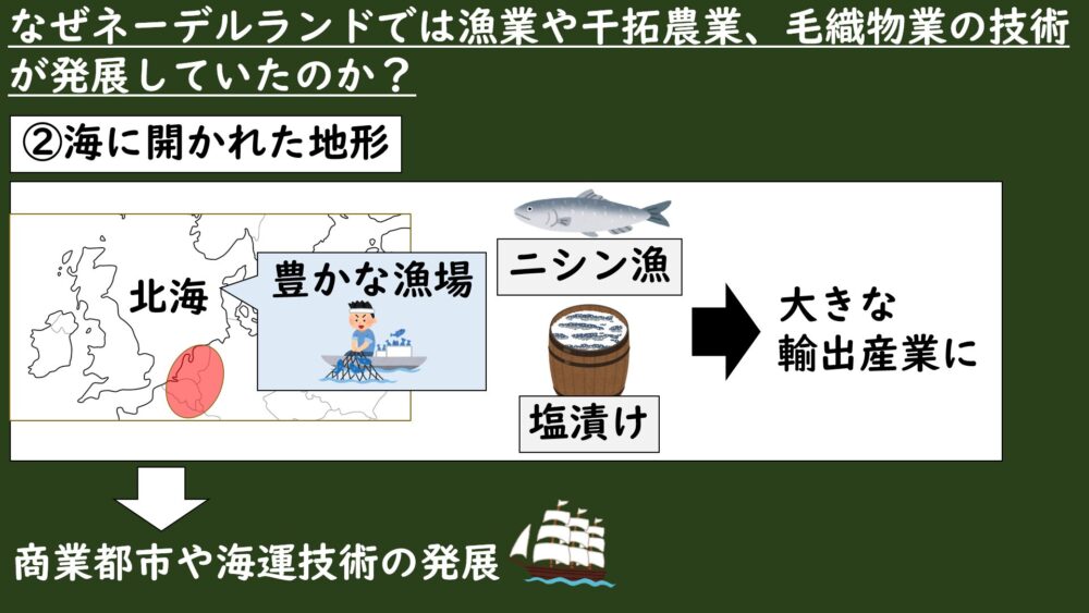 SQ:なぜネーデルランドでは漁業や干拓農業、毛織物業の技術が発展していたのか?