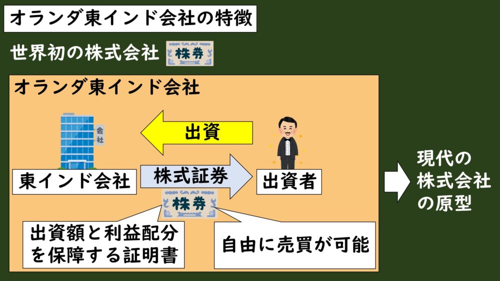 なので、オランダ東インド会社はこうした現代の株式会社の原型となる仕組みを備えていたことから、「世界初の株式会社」と呼ばれているんです。