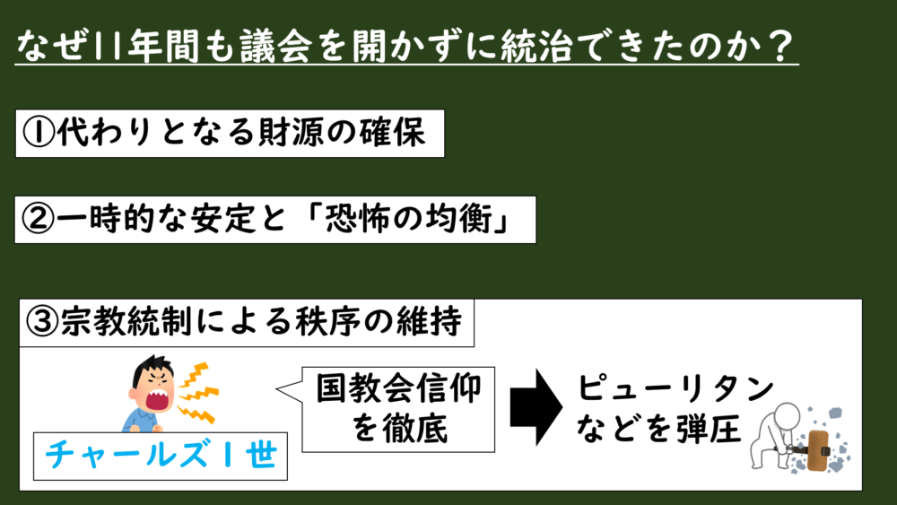 では、なぜ11年間も議会を開かずに統治することができたんでしょうか?