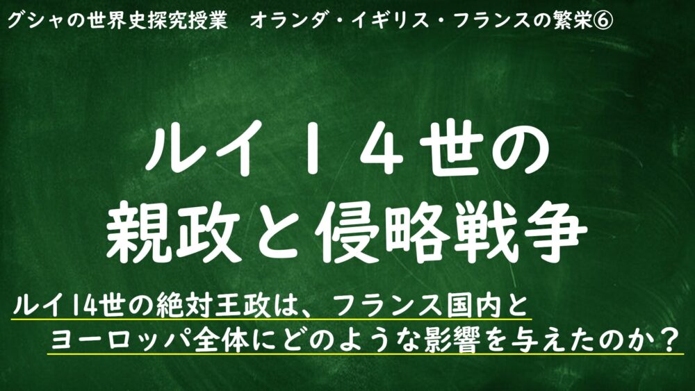 今回はフランス絶対王政下で全盛期を築いたルイ14世の親政と侵略戦争についてです。