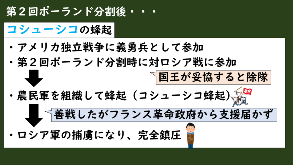 第2回分割によってほとんどの領土を失ってしまったポーランドでしたが、この屈辱に対して抵抗する人々が現れます。