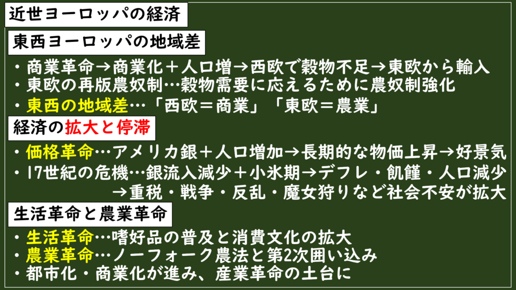 それによって、近世では経済が大きく成長したヨーロッパでしたが、その成長には東西で大きな地域差があったんです。