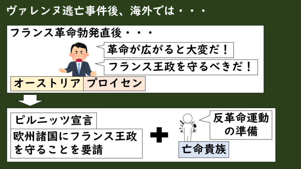 という考えのもと、フランス国王の地位を守ることを求める「ピルニッツ宣言」をヨーロッパ諸国に出して警告を鳴らしました。