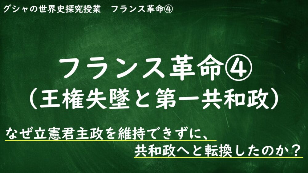 今回はフランス革命の4回目として、「王権の失墜」と「第一共和政」が成立していく過程をみていきます。なぜ立憲君主政から共和政に変わることになったんでしょうか?