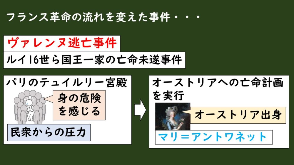 しかし、ヴァレンヌ逃亡事件が起きたことで、状況が一気に変わることになります。