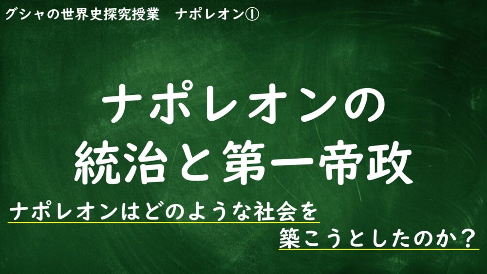 今回はナポレオンが第一帝政を成立させる過程をみていきます。ナポレオンは革命後のフランスで、どのような社会を築こうとしたんでしょうか?