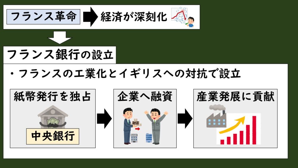 とくに、フランスを工業国家として発展させてイギリスに対抗するためには、安定した通貨を発行する必要がありました。